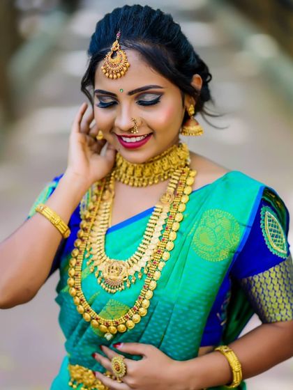 Makeup, Hair, Draping & Rentals - Bridal, party, baby shower, Bharatanatyam, photoshoot looks, advanced hairstyles, saree draping, saree pre-pleating, bridal jewellery rentals.