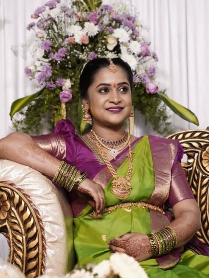 We handle your makeup, hair, and saree draping for any special occasion, focusing on natural looks, long-lasting finish, and custom floral accessories, with free trial demos so you know exactly what to expect.