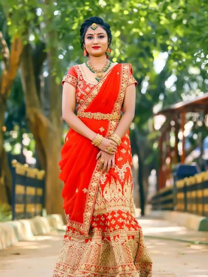 Hey! We’re Sonisha Bridal House. We don’t believe in caking your face, nope. We just want you to look like you, but glowing, happy, and confident. We love doing that natural skin finish makeup, and yes, we know weddings can drain your wallet, so we keep our rates friendly. We make fresh floral jadas and those saree-matching brooches too. Happy faces, that’s what we live for.