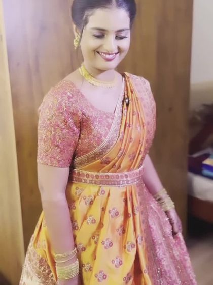 I love creating looks for all the fun wedding festivities, from the engagement and mehendi to the traditional 'beegara oota' feast. These looks are typically fresh, colourful, and designed for comfort, so you can celebrate without a worry.