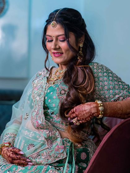 Hey, I’m Pankti. Makeup for me is like painting feelings, not just faces. Every bride’s got a story, and I get to bring it out—sometimes with a soft glow, sometimes with all-out drama. My best friend’s wedding? Did her makeup, cried a little, laughed a lot. I’ve packed my kit for Mumbai, Thailand, wherever my brides need me. Honestly, I live for those moments. It’s not just makeup, it’s being a part of someone’s big day.