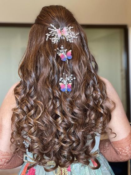A bridal look is incomplete without the perfect hair and draping. My talented hairstylists create everything from intricate traditional buns adorned with fresh flowers to soft, romantic waves. We also provide expert saree and lehenga draping to ensure your entire look is flawless from head to toe.