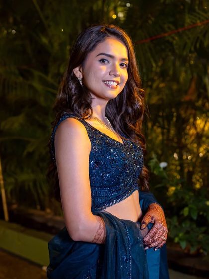 This is for the heart of the wedding celebrations, including Sangeet, Mehendi, and Haldi events. I create looks that are vibrant, festive, and long-lasting, whether you prefer a classic bronze style or something more colorful to match your outfit. My services include full hair and draping, so you are completely ready for every ceremony.