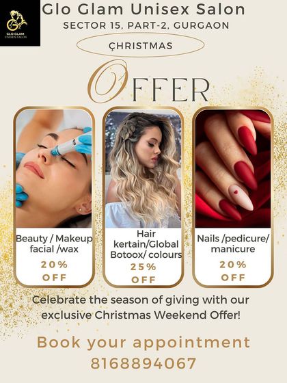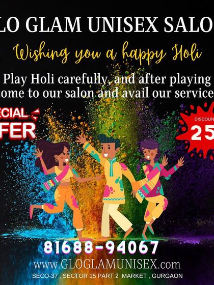 Hi, we’re Glo Glam Unisex Salon. Hamare yahan (at our place), it’s not just about beauty - it’s about feeling happy and relaxed. Festivals ka maza (the joy of festivals) we celebrate with you, rangoli on Diwali, colours on Holi, and smiles every day. Jab koi client bolta hai ‘Makeup was very awesome,’ bas, that’s our reward. Vloggers bhi aaye hain, which is fun. We’re a team, a family, spreading good vibes and glam.