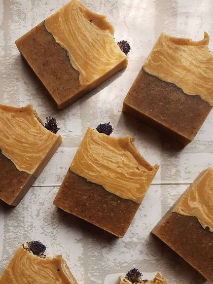 I make small-batch, handmade soaps, shampoo bars, and scrubs using real ingredients like pumpkin, coconut milk, and flowers, with no chemicals or palm oil, and I offer custom options for different skin and hair needs.