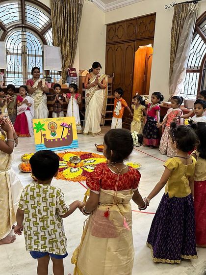 Indian Festival Celebration in Montessori - We celebrate everything – Onam pookalams, Dussehra, Kannada Rajyotsava – kids learn through joy and tradition.