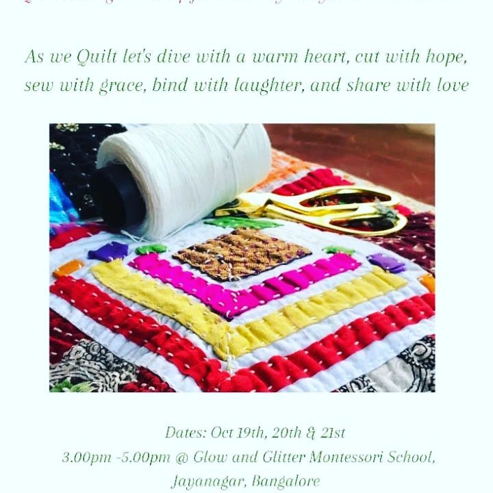 This is a special workshop focused on creating memories, not just crafts. We use meaningful fabrics from your home, like old sarees or shawls, to make beautiful quilts. It is a wonderful way to preserve family history and create a tangible piece of your heritage to pass down.