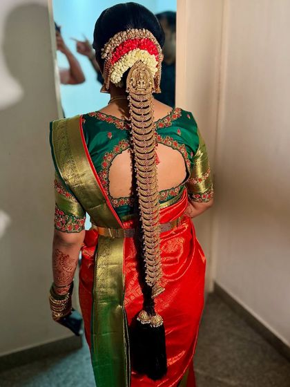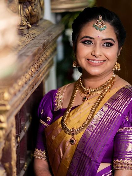 Traditional Saree Draping & Hairstyles - Love doing hand-drawn kalyanam bottu and South Indian bridal hairstyles to match your vibe.