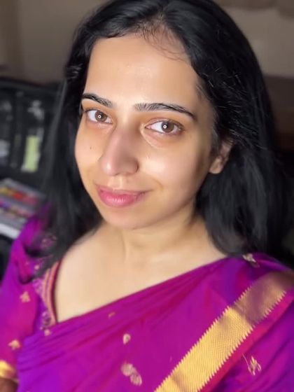 I specialize in creating timeless Muhurtham looks that honor tradition while feeling fresh and modern. My focus is on flawless, long-lasting airbrush makeup that looks like real skin, perfect for South Indian ceremonies, paired with classic Kanchivaram saree draping.