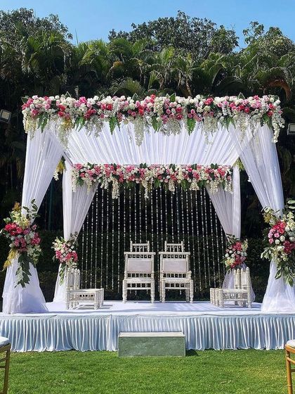 - Mandap and vedi? I can go traditional with roses or keep it modern with pastel flowers and white drapes.