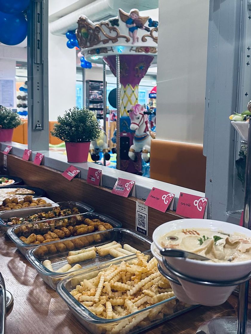 I designed our play area to be a world of endless fun. It features a multi-level soft play structure with slides and tunnels, a colorful ball pit, a gentle carousel, and even some fun arcade games for all ages.