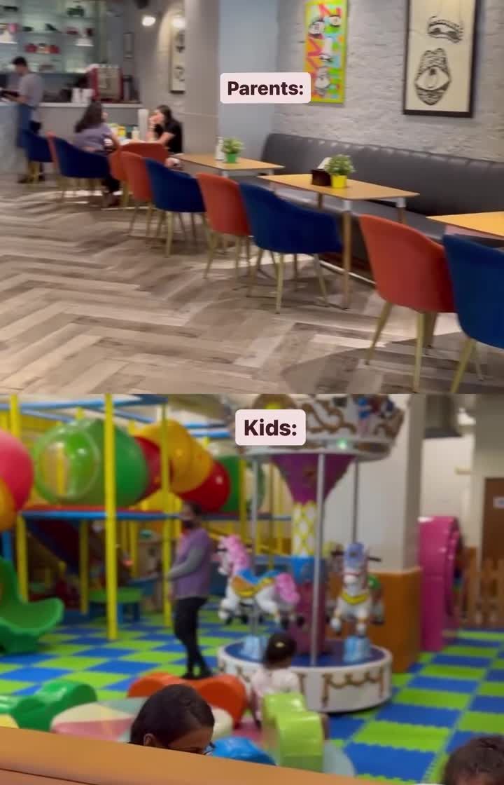 I made sure parents have a comfy spot too. Our cafe features plush seating and a long counter overlooking the play area, so you can sip on a perfectly made latte and enjoy a hearty meal while keeping an eye on your little ones.