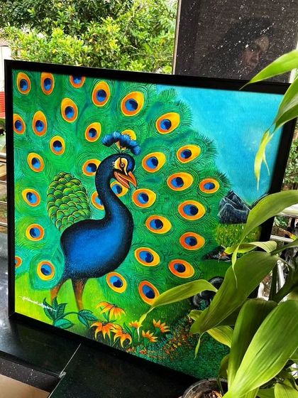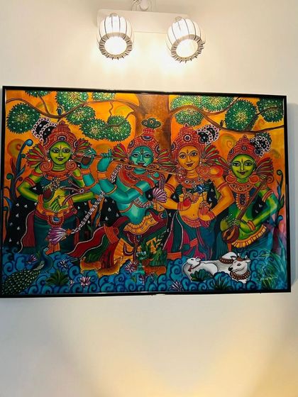 We create custom canvas paintings and murals inspired by Kerala traditions or your ideas, using acrylics on canvas or plywood, with options for size, framing, and worldwide delivery.