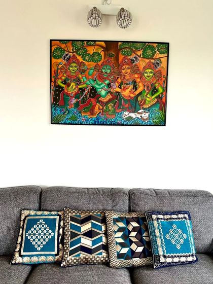 I create custom acrylic paintings, sketches, and digital portraits to bring positive energy to your home. My art is deeply inspired by my love for Kerala's traditional murals and spiritual themes.