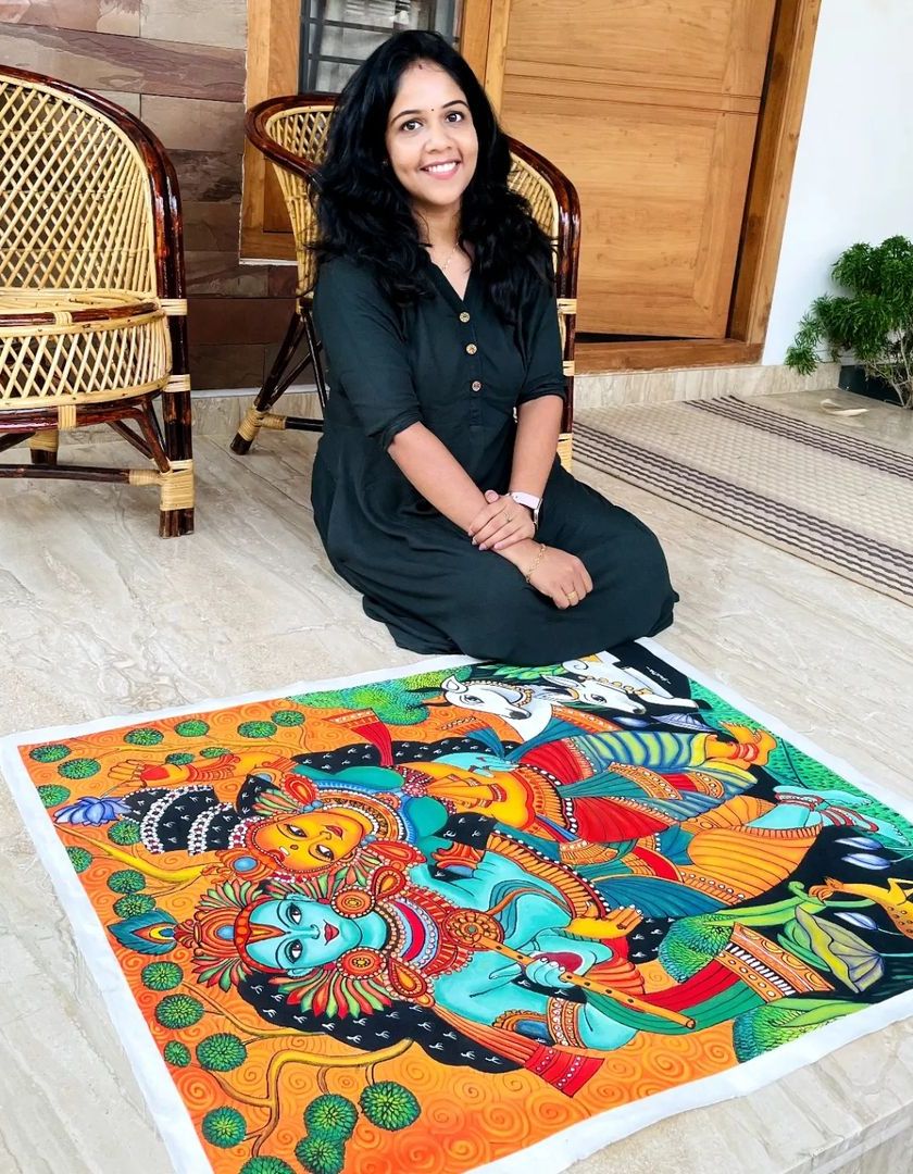 I paint vibrant pieces inspired by my Keralite roots, specializing in traditional art forms like Theyyam, Kathakali, and intricate murals. These large-scale canvas paintings capture the rich colors and stories of our culture.