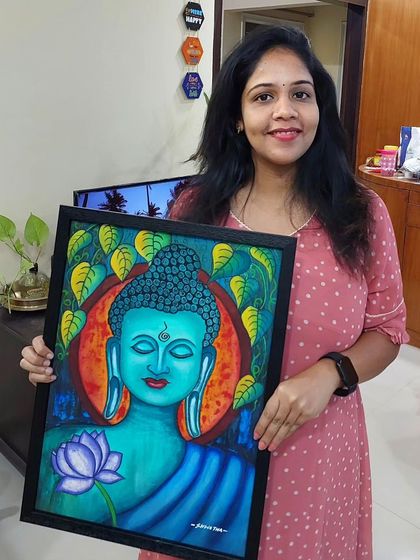 This is a little glimpse into my world. Painting is my meditation, and my home studio in Bangalore is where I bring your stories to life, often with my little one by my side. I ship my art worldwide.