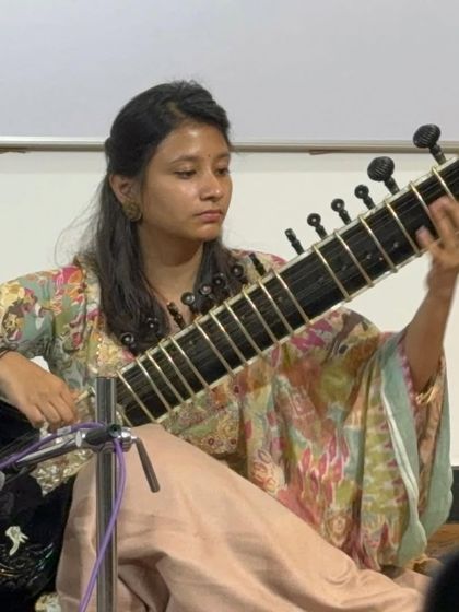 We offer comprehensive sitar training in Hindustani classical music, teaching complex ragas like Gujri Todi and Yaman. Our curriculum combines hands-on practical learning with traditional compositions, enhanced by collaborative sessions with tabla accompaniment.