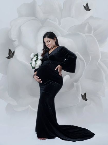 We do maternity photoshoots with an all-women team, offer unique themes like horse and cultural shoots, provide props and gowns, and focus on comfort and real moments in a relaxed studio or outdoor setting.
