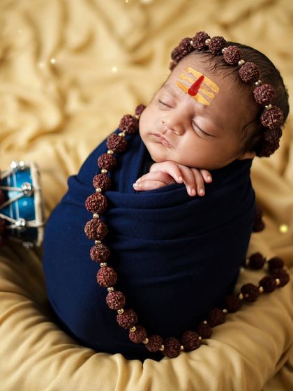 We love bringing our culture into our photography, it is our dharam. We create special setups for festivals like Janmashtami with Bal Gopal themes, or divine Shiva concepts for your little one. These shoots are a beautiful way to create memories that connect to our roots.