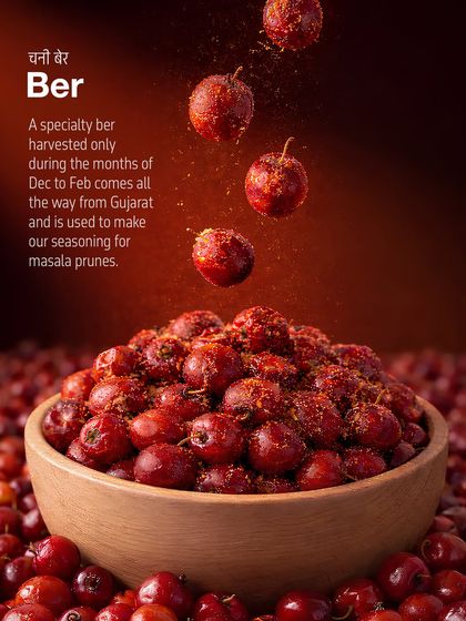 Rooted Ingredients - We source from origin - Ladwa mangoes for chunda, Chani Ber for masala prunes. Real taste, real roots.