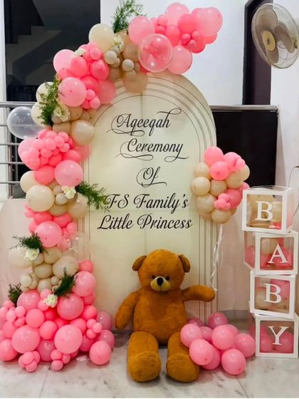 - Personalized naming ceremony decor for traditional events - I can add your baby's photo, do custom banners, or bring in a theme like "Little Princess" for Aqeeqah.