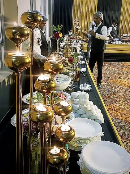 Theme-Based Event Catering - Pick from White & Gold, Black & Gold, or ask us for custom decor, crockery, and setup.
