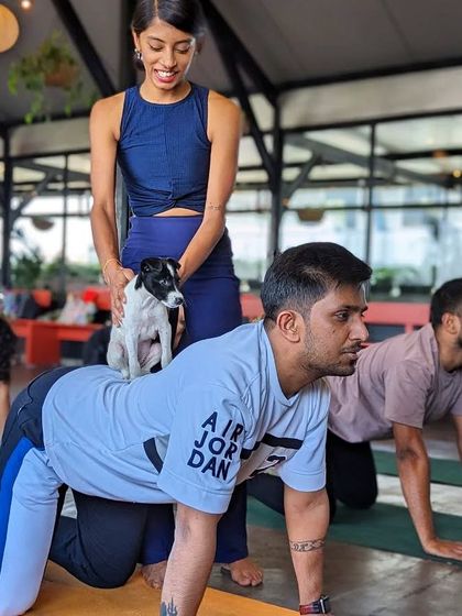 I offer yoga, Animal Flow, and mindful movement classes for all levels, including Puppy Yoga and partner sessions, with options for online, in-person, and private practice.