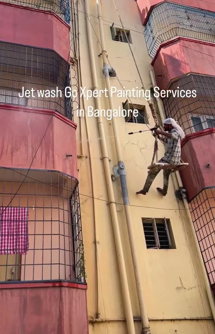 A long-lasting paint or waterproofing job starts with proper preparation. I use high-pressure jet washing to remove all dirt, algae, and old paint from exterior walls, even on high-rise buildings. This creates a clean, solid base for the new coating to bond perfectly.