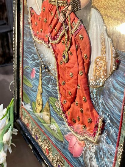 - I’m obsessed with Raja Ravi Varma oleographs, reworked on cloth and detailed with embroidery for a fresh, textured look.