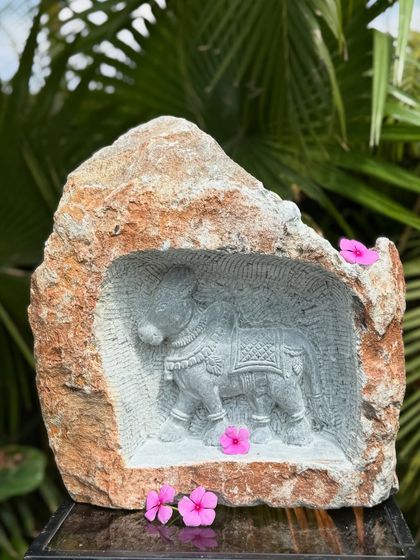 Inspired by South India - Our stone sculptures and living orchid arrangements are rooted in local temple art and rustic charm.