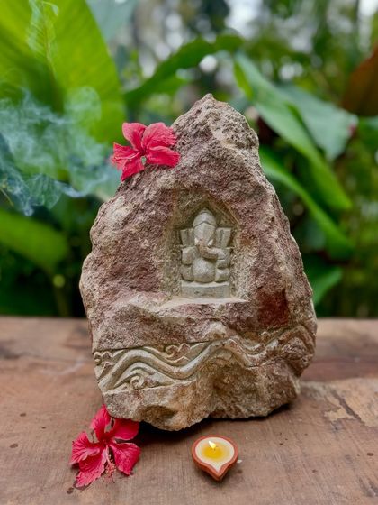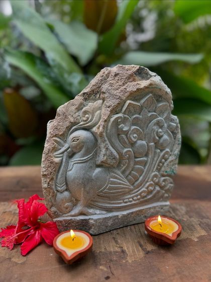 Art collectors, spiritual enthusiasts, and homeowners seeking authentic handcrafted stone decor that blends cultural heritage with traditional craftsmanship.