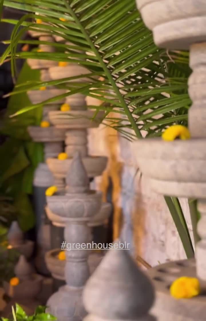We create temple-style 'Tulasi Katte' (sacred planters) to honor the auspicious Tulasi plant in your courtyard, garden, or balcony. Hand-carved from granite, sandstone, and marble, these pieces feature divine motifs like the Shanku, Chakra, and Nama, and include a niche for a diya. They are available in various sizes and designs to suit your home.