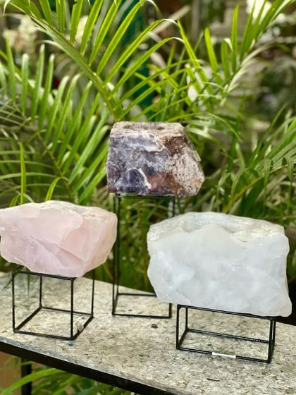 Our collection features unique, handcrafted pieces to complement your plants. We offer vibrant mosaic planters made from hand-cut tiles, natural crystal planters that bring positive energy, and other curated decor items.