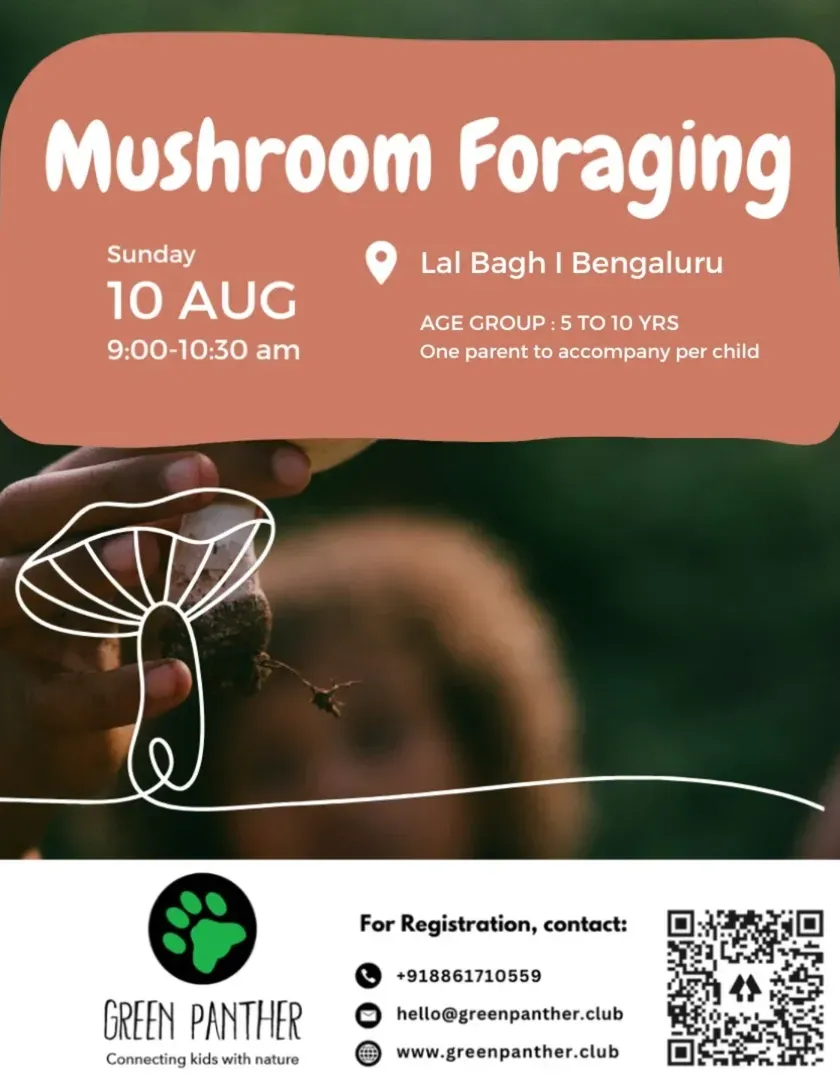 Discover the hidden world of fungi in urban parks during our seasonal mushroom foraging walks. We guide kids (5-10 years) to spot and identify different types of mushrooms, learning about their role in the ecosystem.