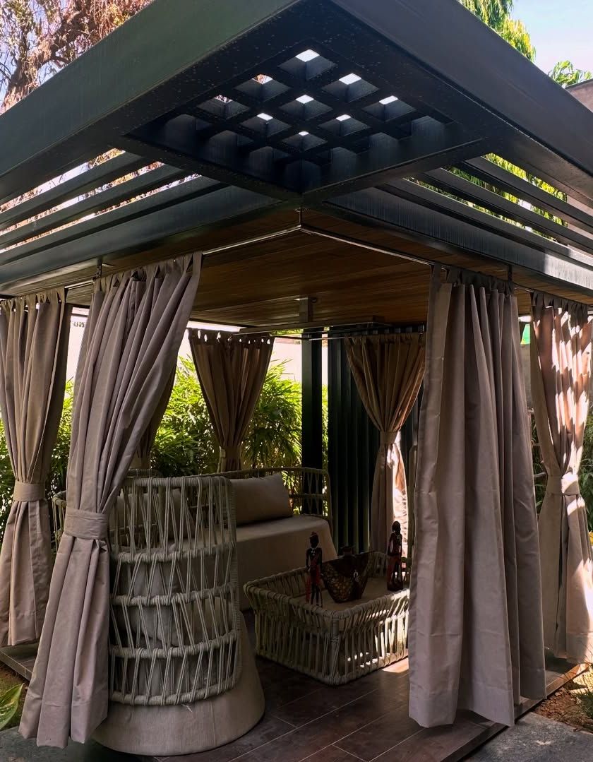 A custom-designed pergola or lounge is the ultimate centerpiece for an outdoor space. I design and build these structures to create shaded, comfortable, and luxurious areas for relaxation and entertainment. Each design is tailored to the client's property and lifestyle, as seen in this Jaipur project.