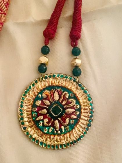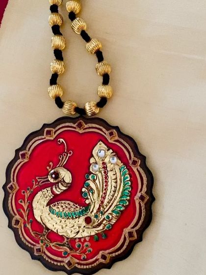 We create unique handcrafted jewelry pieces that blend traditional Indian art forms with contemporary designs. Our collection includes necklaces, pendants, earrings, and bracelets featuring intricate Tanjore, Warli, Gond, and Tholu Bommalata art styles.