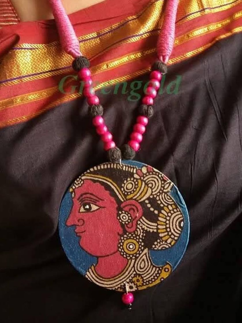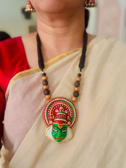 Each wooden pendant is a tiny canvas where I bring stories to life with a fine brush. It can take up to 15 days to complete a single miniature, with themes ranging from divine faces and Kerala murals to folk art motifs. These pieces are for those who appreciate the patience and precision of handmade art.