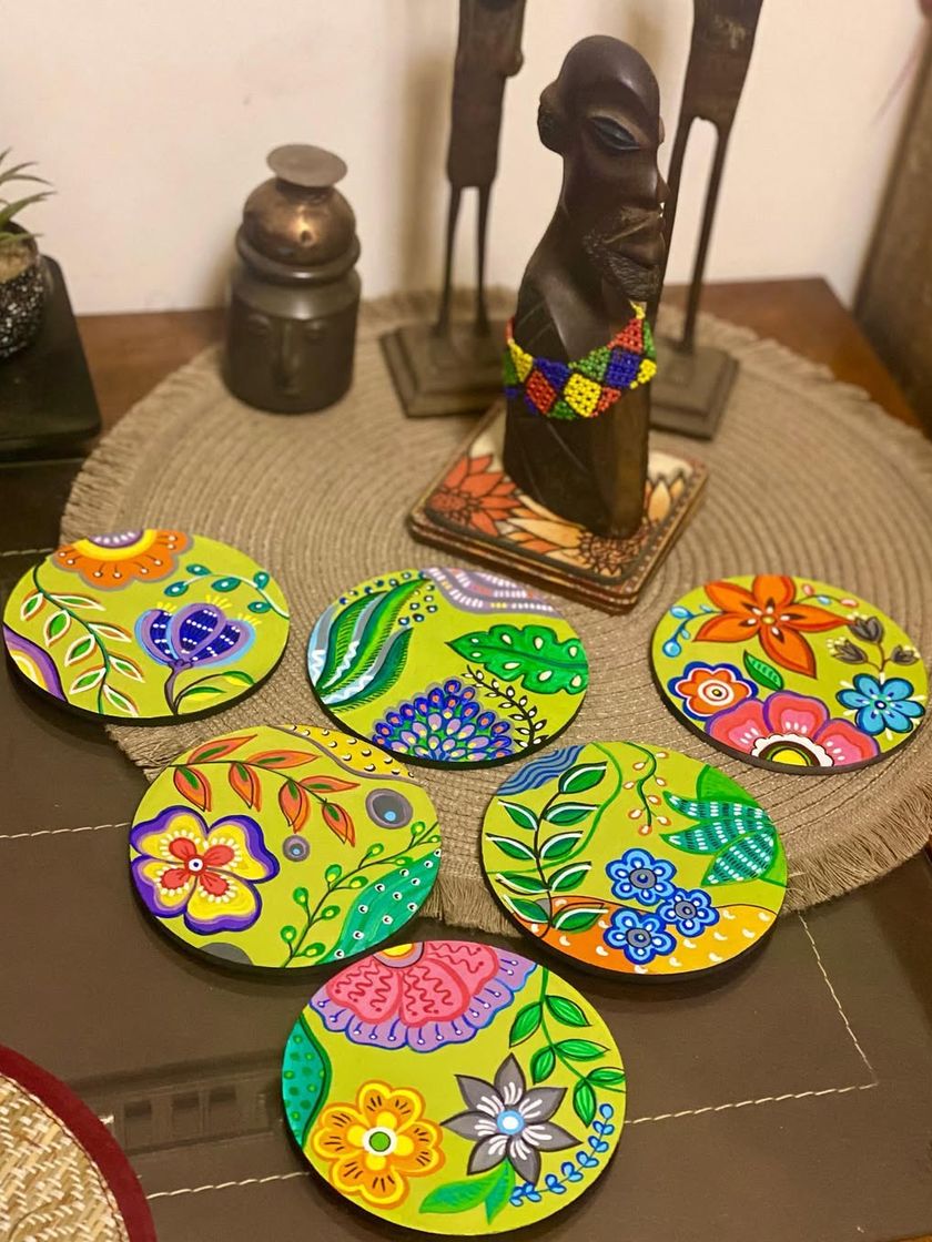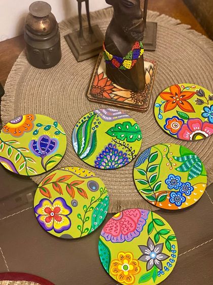 I love collaborating with clients on unique ideas, from miniature paintings on tiny discs to funky coaster sets and framed art. These small-scale pieces require immense precision and are perfect for gifting or adding a touch of art to any small space.