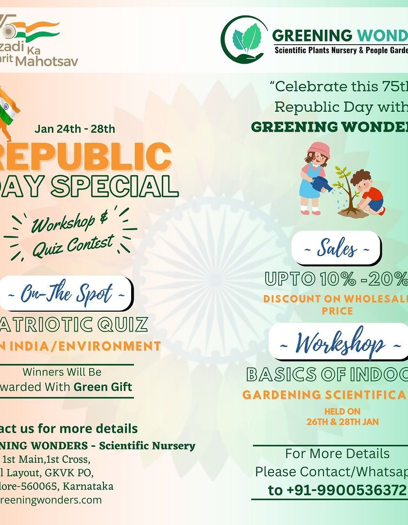 Stay updated with our latest promotions, events, and announcements. This section includes information on our seasonal sales, festival offers, and special initiatives like our 'Reduce, Reuse, Recycle' program for old nursery pots.