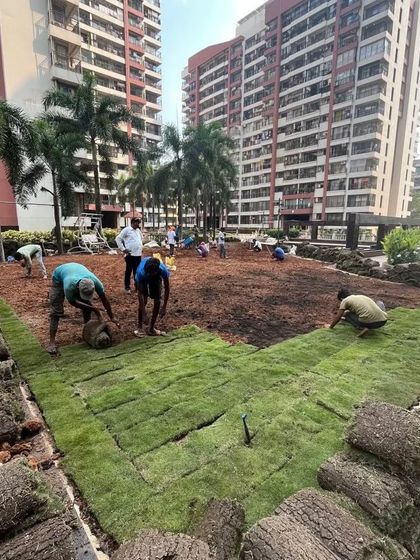 We specialize in professional lawn installation for large areas, from residential complexes to 9,000 sqft industrial sites. Our process includes meticulous ground preparation, soil enrichment, and rapid installation, often completing projects in just a few days.
