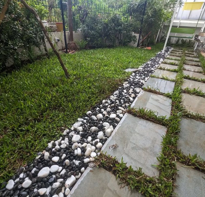 We transform private outdoor spaces, from compact 350 sqft backyards to entire villa gardens. Our services include creating lush lawns, designing stone pathways with pebble borders, and dense planting to bring your dream garden to life.