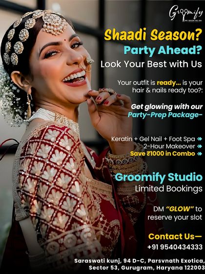 Hey, we’re Groomify Studio. Golf Course Road is our turf, and our motto? We Groom The Era. You walk in, maybe stressed, maybe excited. A head massage, some nail art, and suddenly—mood lifted! We’ve seen couples joke, 'Ye yaha bhi piche piche aa gaya!' (He followed me here too!). Little divas celebrating birthdays, everyone leaving with big smiles. That’s what keeps us going. Good vibes, happy faces, and a space where you can just be.