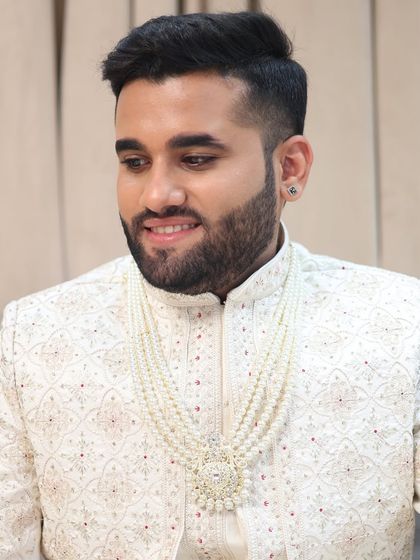 The wedding day is the main event, and your look should be nothing short of perfect. This gallery shows my work on grooms for their big day, focusing on fresh, long-lasting makeup that complements traditional attire like Sherwanis. I create a variety of styles, from natural and subtle for a day ceremony to a more defined look for evening rituals.