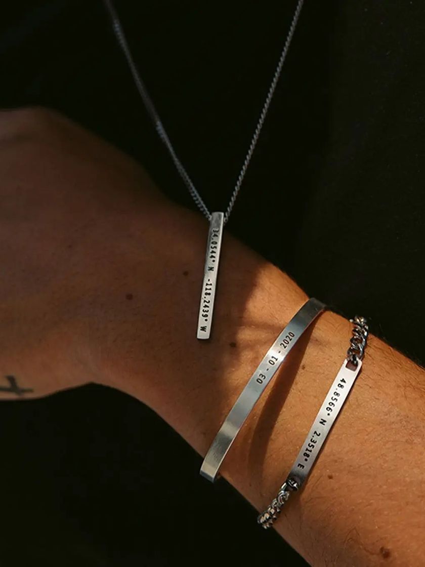 For those who love clean lines and modern design, my engraved bar pendants are the perfect choice. I can engrave all four sides with names, dates, coordinates, or short messages, creating a minimalist piece that tells your unique story.