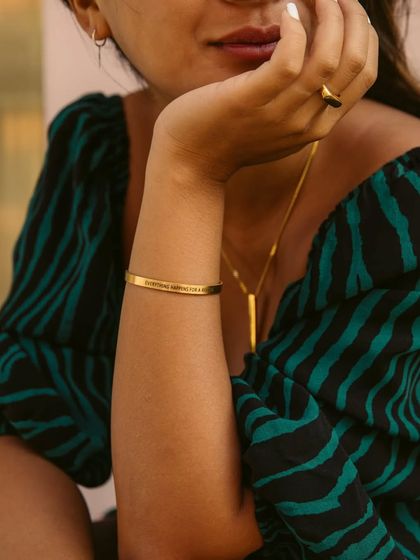 My collection also includes engraved bracelets for a different way to wear your story. Made from the same high-quality, tarnish-resistant stainless steel, these adjustable bracelets can be customized with names, dates, or messages.