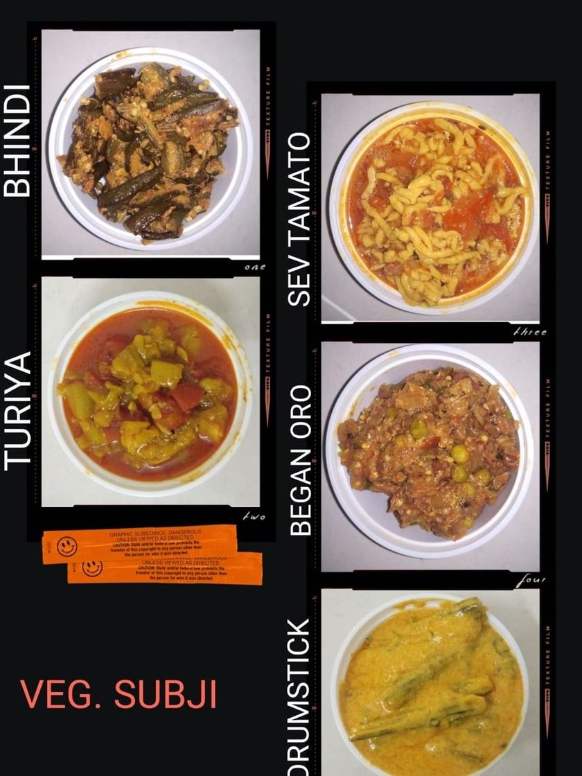 I prepare a different vegetable curry every day, just like at home. If you don't like the day's option, you can choose from other available sabjis like Sev Tamato, Bhindi, or Ringan no Oro. All are cooked fresh with pure ingredients.
