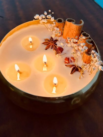 From tiny get-togethers to big corporate orders, I’ve done them all. Mini candle jars make elegant, affordable return gifts for weddings and parties. For baby showers, I go extra cute - think candles shaped like tiny baby feet or teddy bears with matching labels. Diwali candle hampers (especially my urli candles) are real crowd-pleasers, and I love making premium hampers with dry fruits and chocolates too.
