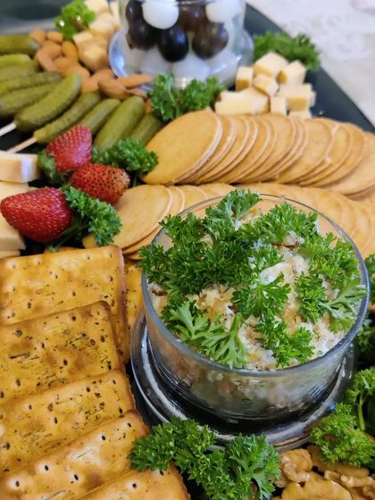 We make fresh vegetarian platters and boards from scratch in our home kitchen, using homemade cheeses and dips, with no outsourcing or mass production.