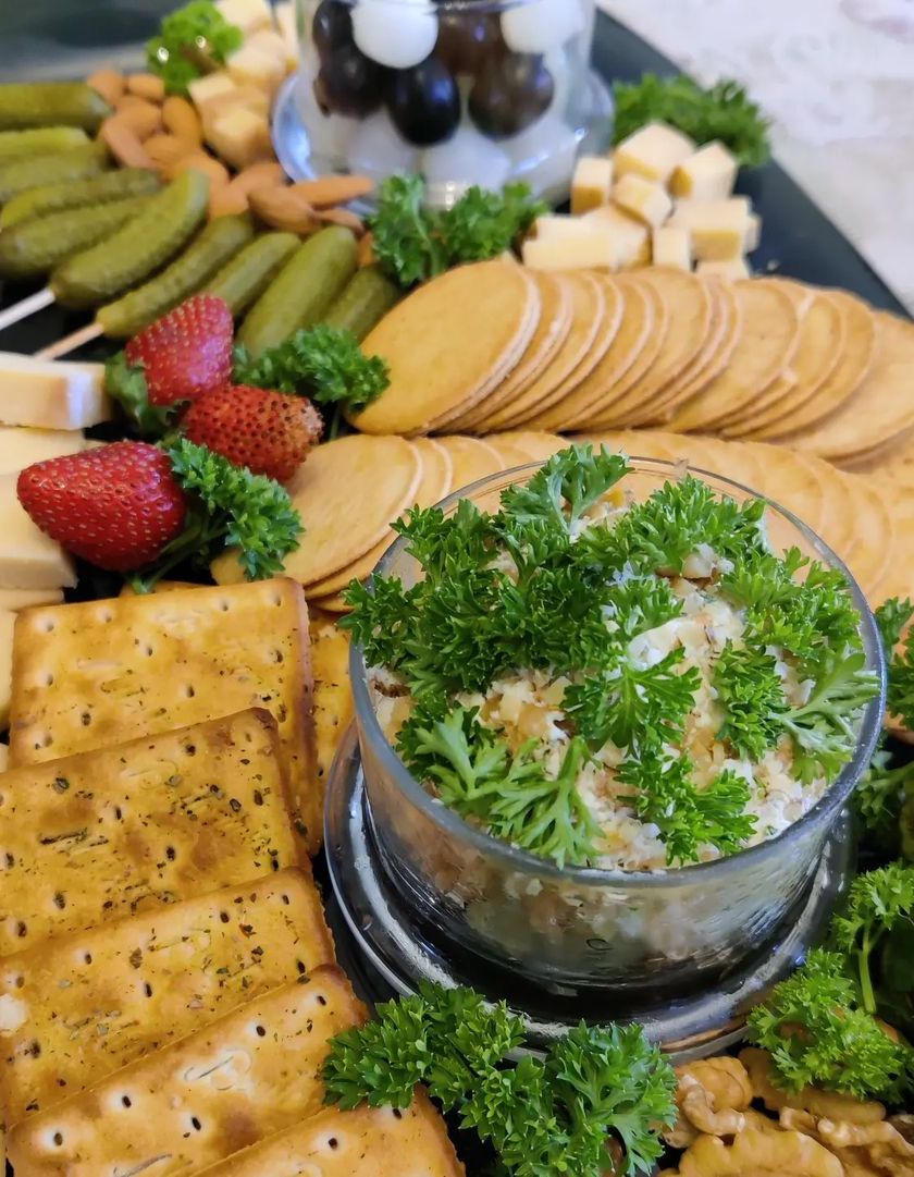 We craft all our cheeses, dips, and crackers from scratch to create beautiful and delicious boards. Our offerings range from assorted cream cheese balls in flavors like Paprika Garlic to elegant cheese logs perfect for gifting or any celebration.