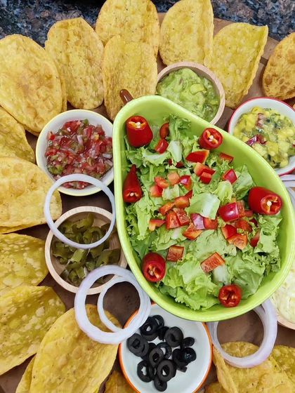 Bring the fun of a Mexican fiesta to your home with our 100% vegetarian platters. We make everything fresh, from the crispy nachos and soft quesadillas to the flavorful salsas and layered burrito bowls.